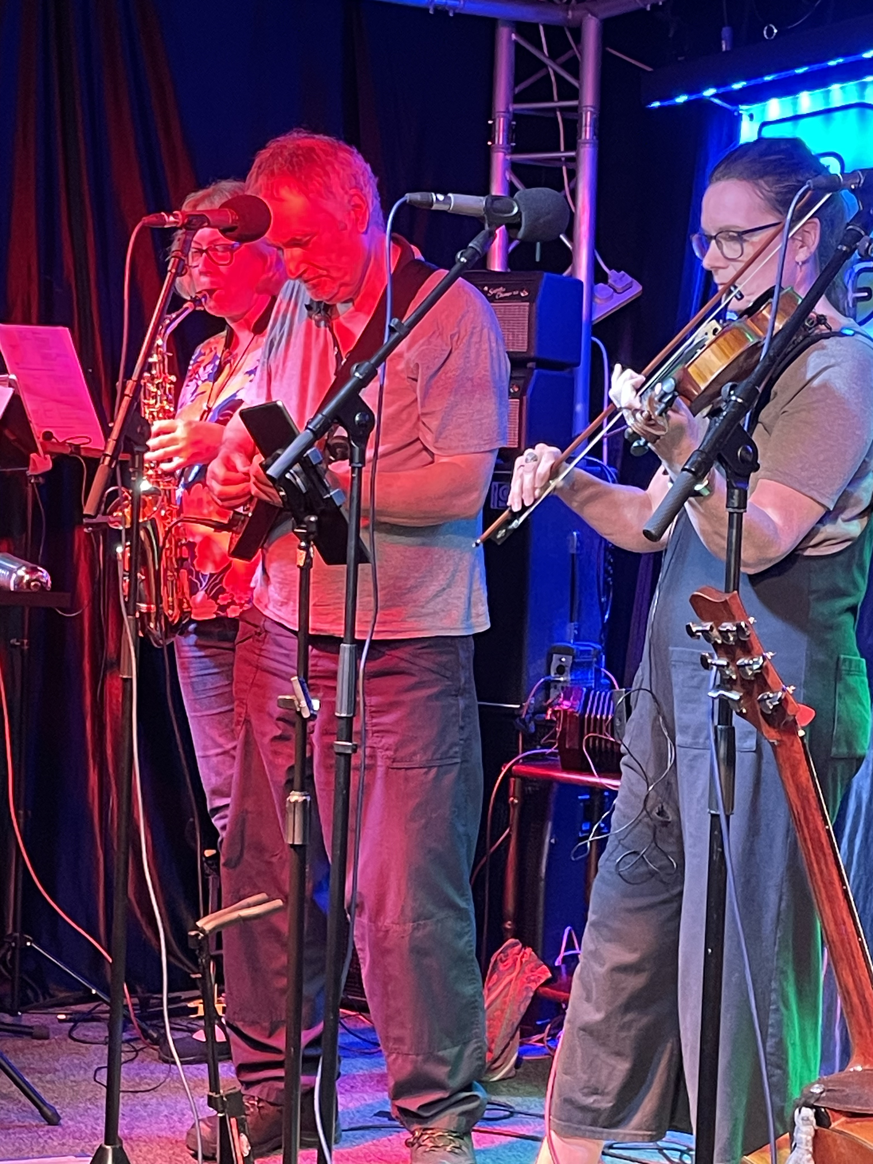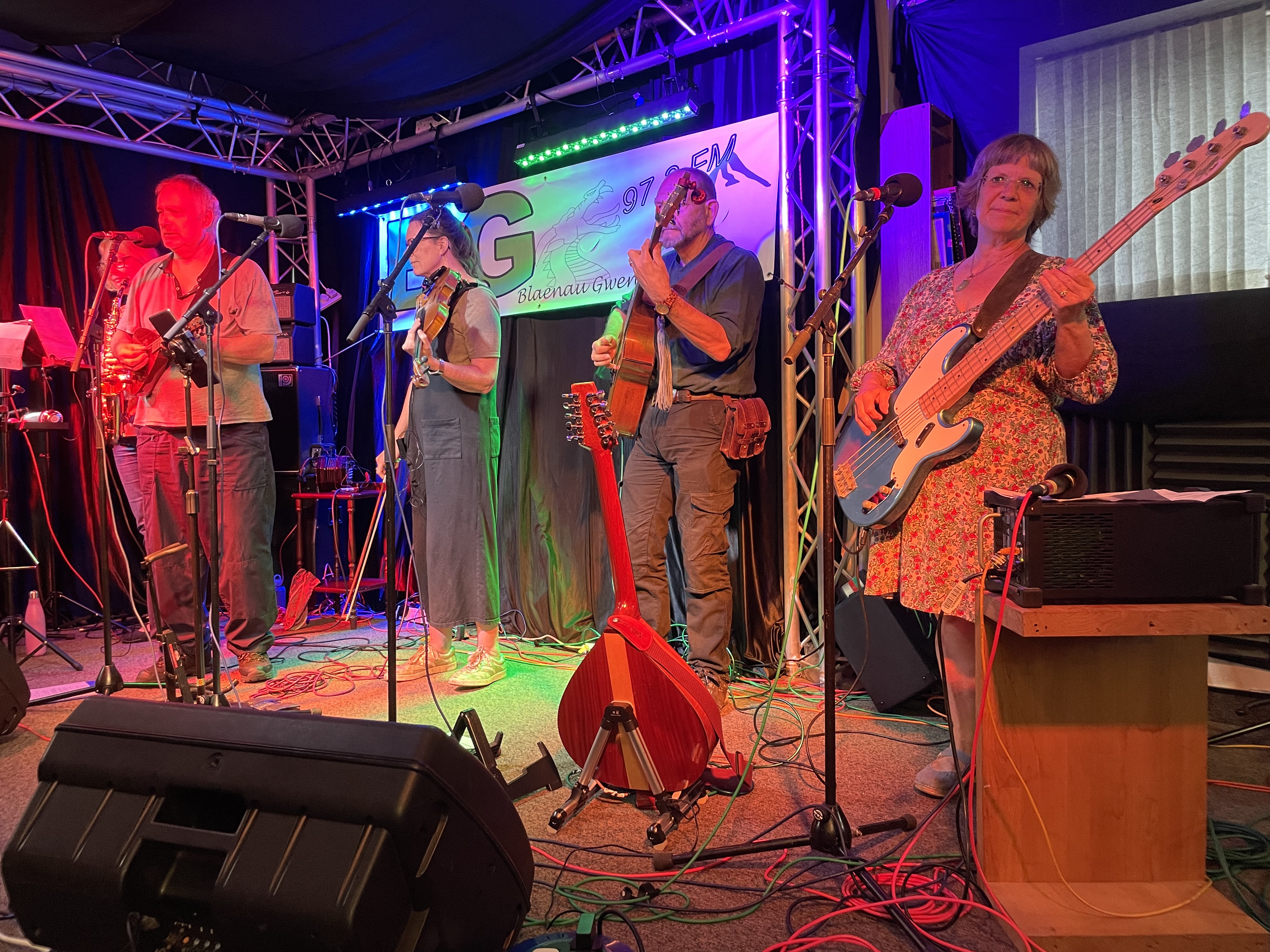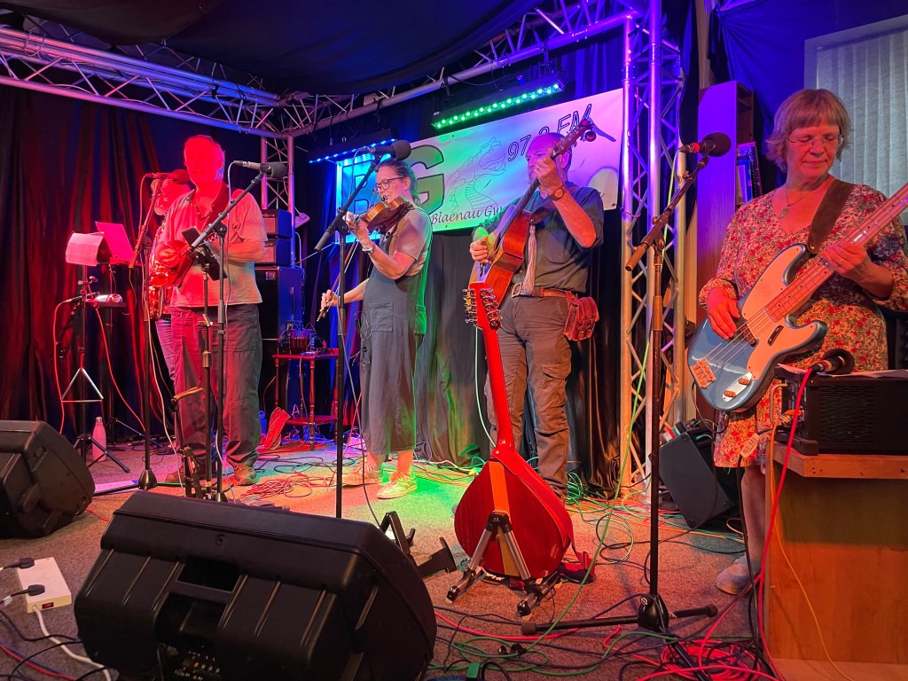 This week’s outing was to Blaenau Gwent FM to perform for Dan James’ Folk Show. We had a blast, despite some holdups enroute and 60% of the band arriving much later than we had hoped. We took a small, but perfectly formed, audience with us and this was augmented by some lovely locals who popped in too! Here are some photos. We were hosted superbly by Dan James and the BGfm crew.